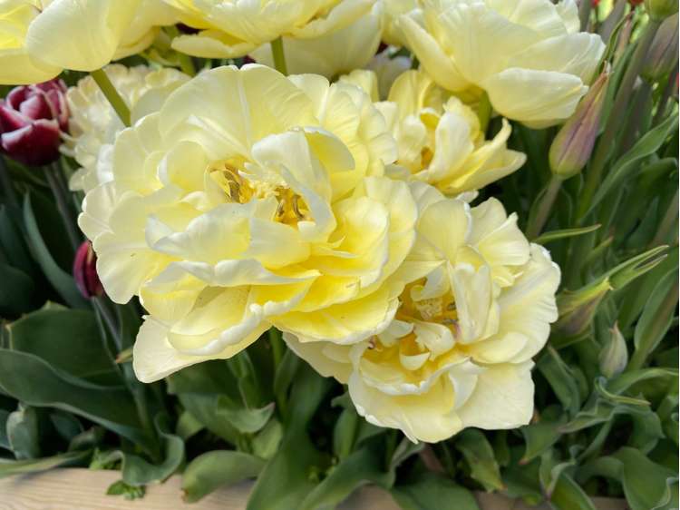 'Avant Garde' ist eine elegante, frühe Doppeltulpe, die für subtile Raffinesse im Frühlingsgarten sorgt. Sie blüht von April bis Mai mit großen, dicht gefüllten Blüten in cremigem Weiß, die oft sanft mit zarten Zitronentönen überzogen sind, und verströmt einen leichten Duft, der das Erlebnis zusätzlich bereichert.