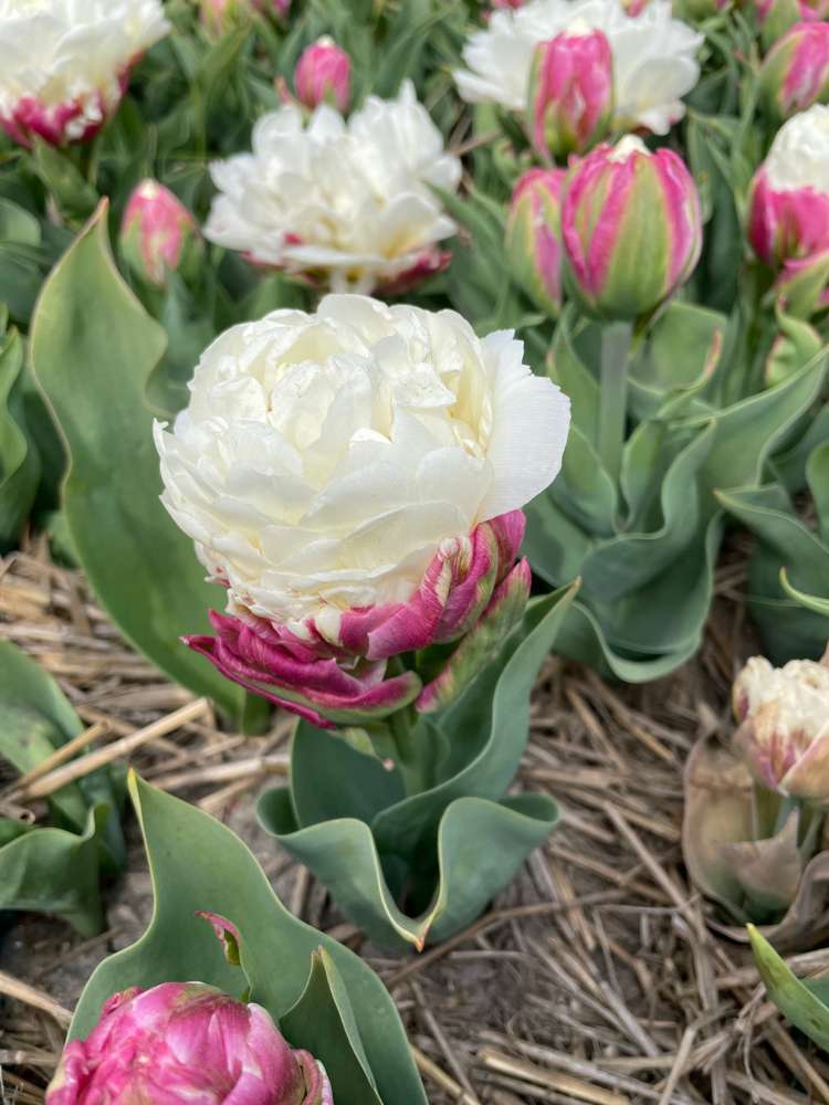 'Ice Cream' gehört zu den auffälligsten und originellsten Kreationen im Garten. Diese Tulpe ist wie ein blühender Nachtisch, der Freude und Überraschung bringt. Ihre einzigartige Form und Farbkombination lassen sie wie eine üppige Eistüte erscheinen: ein dichtes, cremig weißes Zentrum, das wie eine Kugel Vanilleeis nach oben ragt, umgeben von tief rosafarbenen Blütenblättern mit grünen Akzenten, die wie eine dekorative Schale wirken.