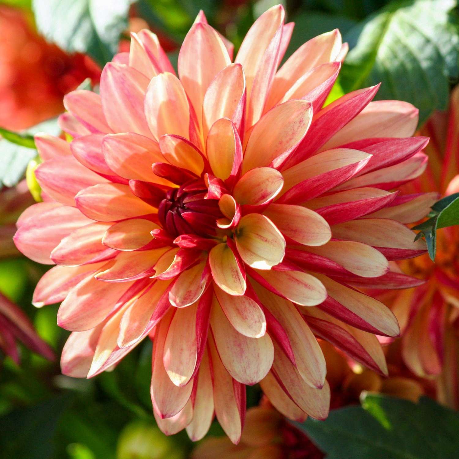 ‘Crazy Legs’ ist eine dekorative Dahlie mit einzigartigen Blüten in einer Mischung aus Orange- und Goldtönen, die die gewundenen Blütenblätter schmücken. Die Pflanze blüht von Juli bis zum ersten Frost und erreicht eine Höhe von etwa 90–120 cm. Die mittelgroßen Blütenköpfe messen 10–15 cm und variieren in ihrer Form, was jeder Pflanze einen individuellen Charakter verleiht.