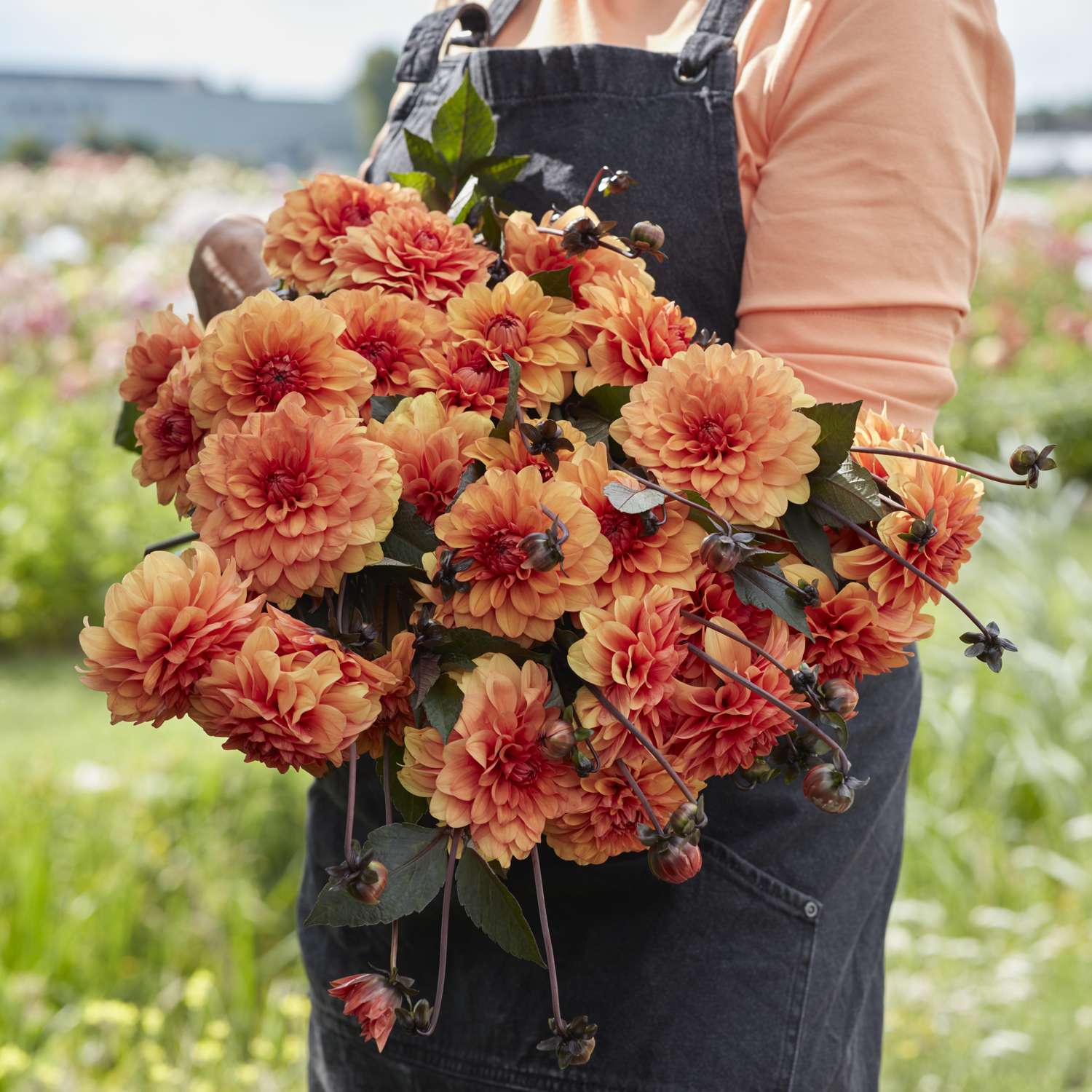 ‘David Howard’ ist eine dekorative Dahlie in burnt-orange, deren Blütenfarbe sich mit der Zeit von intensiv zu heller verändert und bei ein und derselben Pflanze verschiedene Farbtöne auftreten können. Die Blütenköpfe erreichen etwa 10 cm Durchmesser, die Pflanzen werden rund 100 cm hoch.