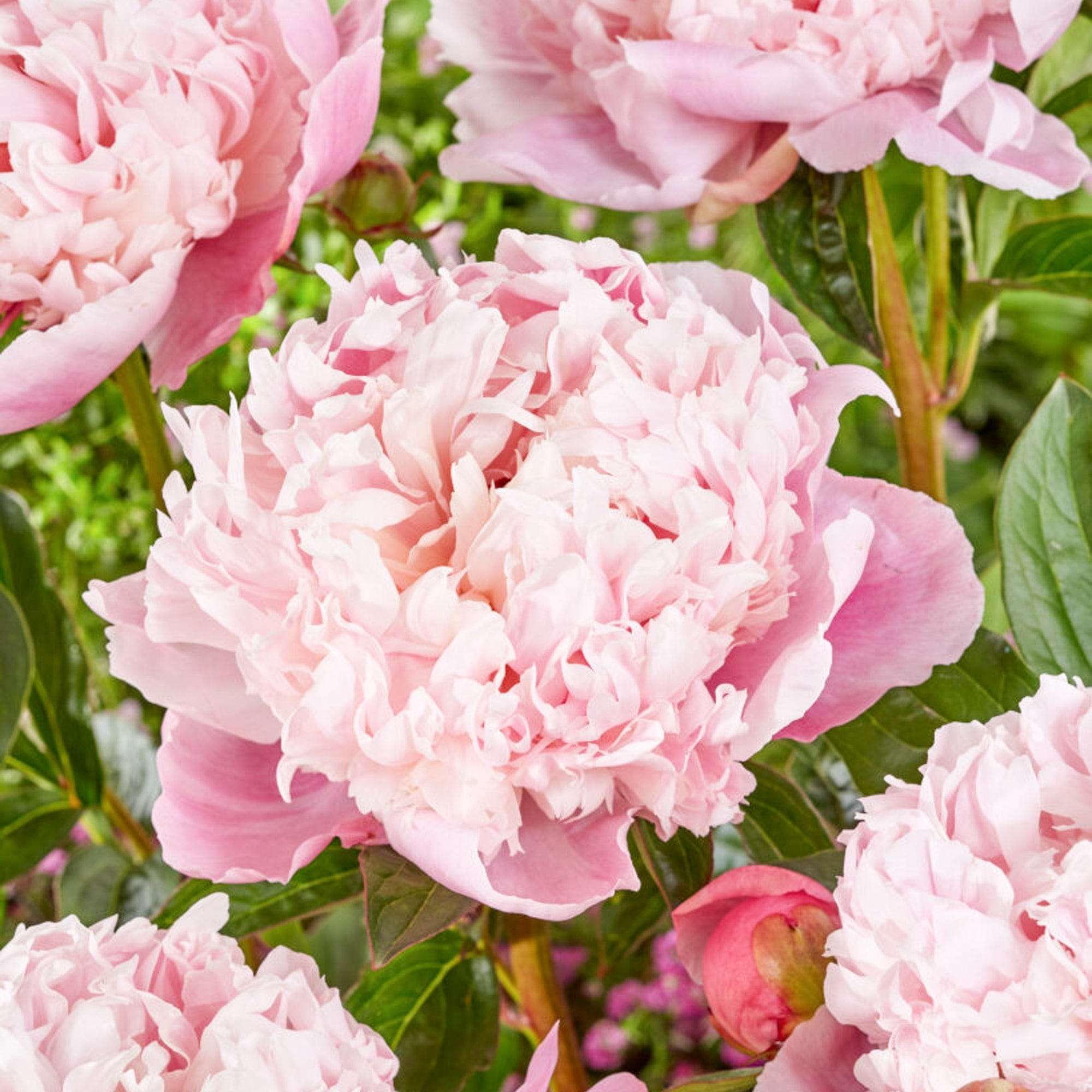Pfingstrose 'Shirley Temple' bezaubert mit großen, gefüllten Blüten in zartem Cremeweiß, die sich beim Aufblühen leicht rosa färben und später reinweiß verblassen. Sie blüht im späten Frühling bis frühen Sommer und verströmt einen sanften, angenehmen Duft. Die Pflanze wächst kompakt und buschig, mit stabilen Stielen, die sich gut für den Vasenschnitt eignen. Eine romantische, vielseitige Sorte, die Eleganz und Leichtigkeit in jedes Beet bringt.