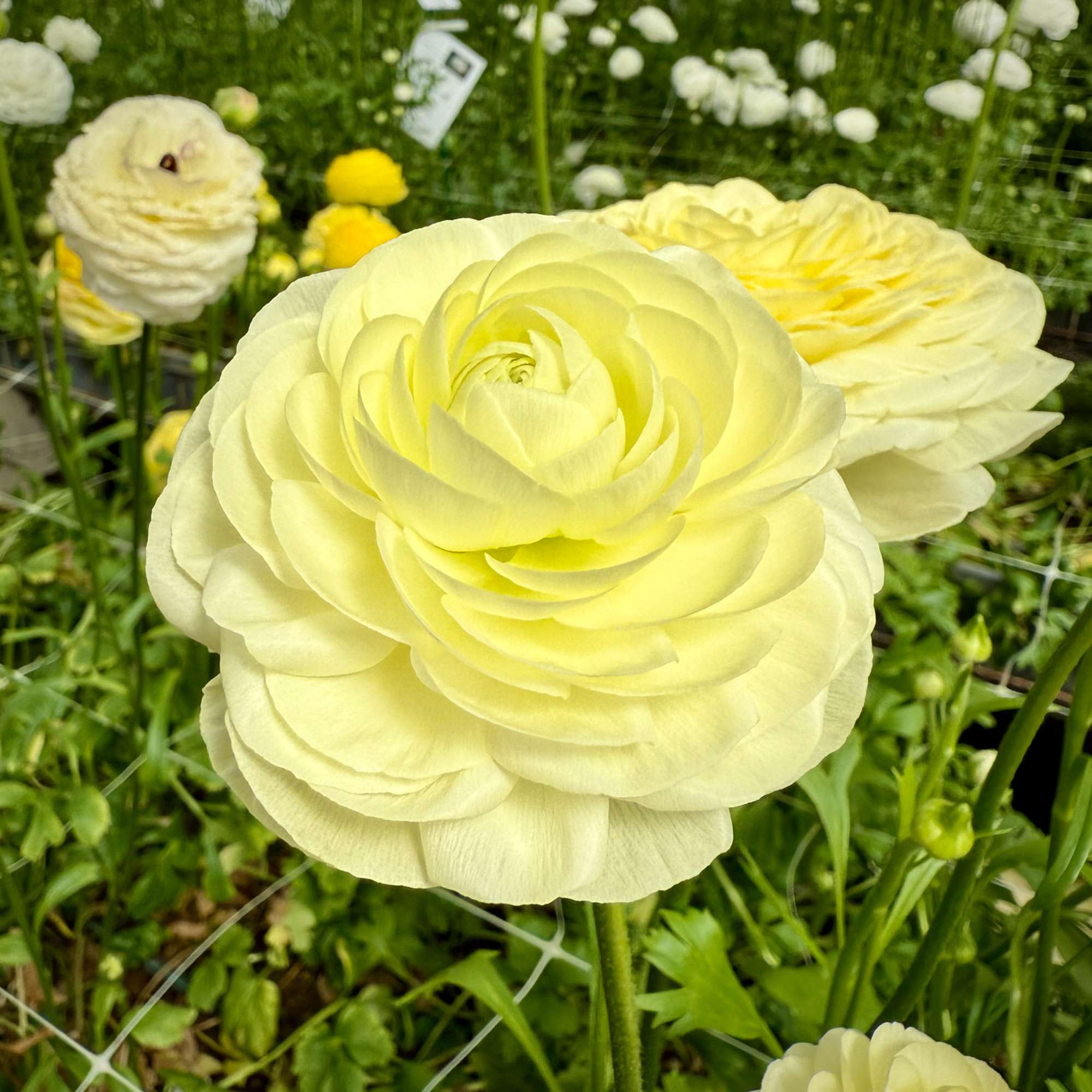 'Elegance® Crema' ist eine besonders elegante Ranunkel aus der renommierten italienischen Elegance®-Serie, die für ihre großen, dicht gefüllten Blüten geschätzt wird. Die Blüte öffnet sich in einem zarten Vanilleton mit Nuancen von Elfenbein und hellem Zitronengelb, das an gekühltes Zitronensorbet an einem Sommertag erinnert.