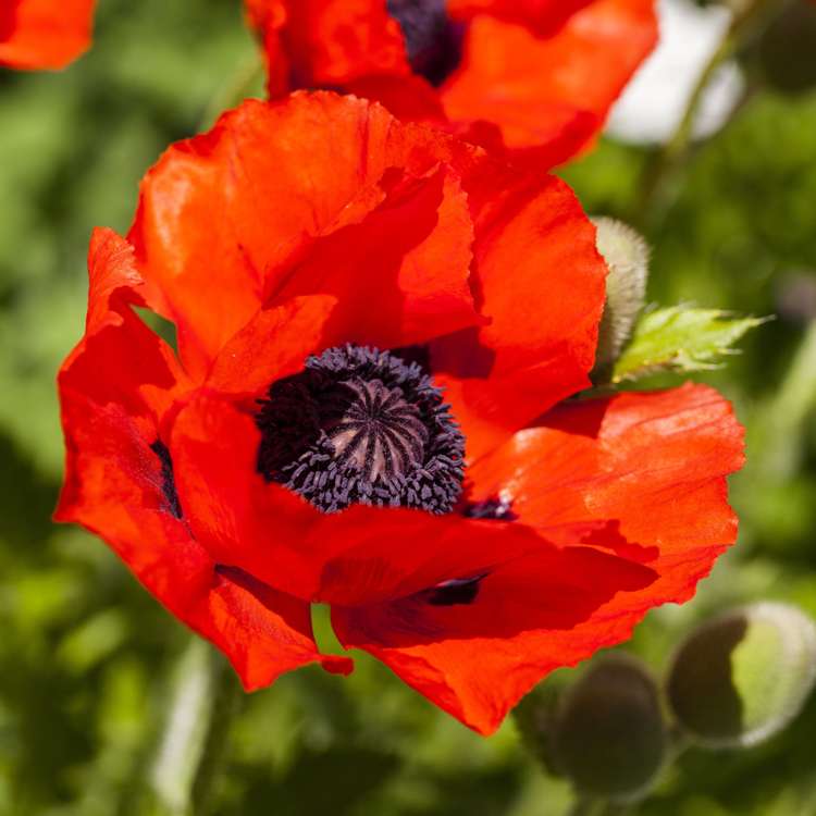 Diese klassische Orientalische Mohnblume ist eine prächtige Staude, die für ihre großen, seidigen Blüten in einem reichen Rottton bekannt ist. Die Blüten schmücken den Garten im Mai und Juni mit ihren dramatischen, gekräuselten Blütenblättern und dem auffälligen dunklen Zentrum. Diese robuste Pflanze gedeiht in voller Sonne und gut durchlässigem Boden und kann eine Höhe von 60-90 cm erreichen, was sie ideal für Blumenbeete und große Pflanzgefäße macht. Nach der Blüte verwelkt das Laub oft, aber die Pflanze regeneriert sich im folgenden Jahr und beeindruckt weiterhin mit ihrer zeitlosen Schönheit. Perfekt, um Struktur, Farbe und Eleganz in den Garten zu bringen.